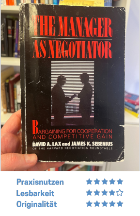 David Lax/James Sebenius, The Manager as Negotiator, New York 1986 (395 Seiten, Softcover, 25,77 €).